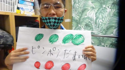ダンスの映像を流し、みんなそれをまねして踊ります。