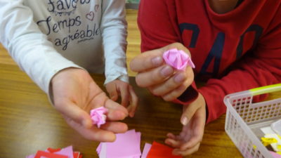 新聞紙でボール運び