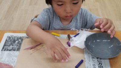 今日のワクワク上石神井の様子です☆ ワクワク上石神井どんな足の形をしているかな? 2022.08.01 今日から8月ですね! 今日の午前中の活動では雑巾リレーをしました。床に貼ってある線に沿って雑巾がけをしていきます! 線に沿って雑巾がけを頑張ってやっています♪ ぎざぎざになっている部分も上手に雑巾がけ出来ているね☆ 午後はサンダル作りをしました!足にスタンプをつけぺたんと足型を付けた後、折り紙で鼻緒を作りました! どんな足の形をしているかな? 手もやってみよう!いっぱいできたね☆ 渡部