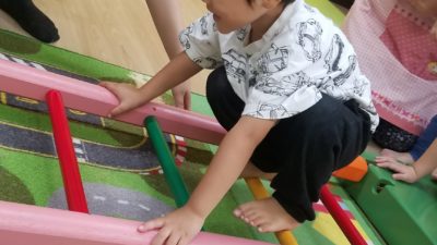 今日は、サーキットをしました!トランポリン・バランスストーン・マットを使って体を沢山動かしました!