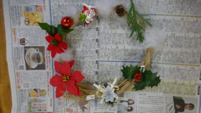 午後はクリスマスのリースを作りました。