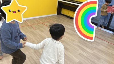 「どれどれ〜。」というふうな表情でお友達が見ています。