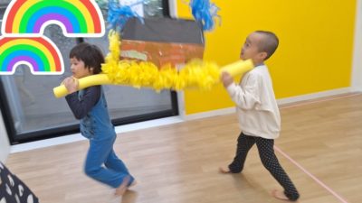 今日は凧揚げをしました!職員がビニール袋とストローで作った凧を使って、2人ずつとばしました♫