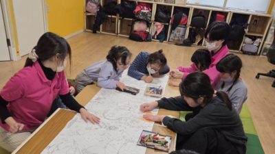 小学生たちのためにアンパンマンの紙芝居や