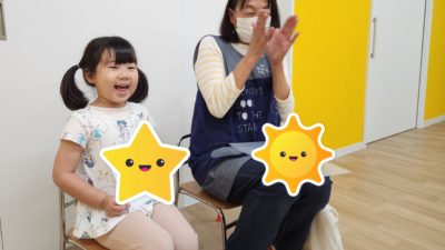 みんなでフープジャンプやジグザグ歩きを行いました。