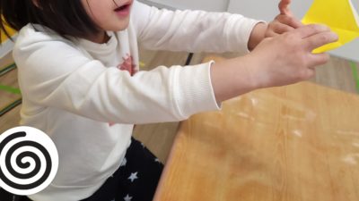 小さいお友だちはまず好きな果物を引っ張って取ることを、大きなお友だちはスタッフがお願いした果物と同じ果物を取ることを行っていきました♪