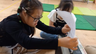雨の中の室内活動!! りぼんU 2023.09.11 金曜日は、しばらく雨が降っていたため、室内で活動をしました。 壁面飾りの製作やペガーボールなどをしました! 室内ですが、元気に体を動かして遊びました(^_^) りぼんU