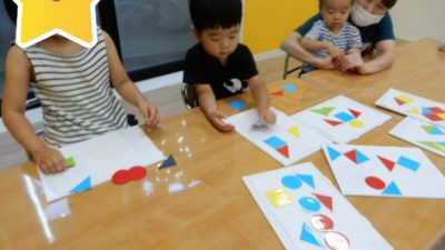 午後は、指先を動かす知育玩具で遊びました、ハサミや糊を使ったり、パズル、サボテンツリー、糸通し、型はめ等、いろいろな知育玩具で集中して遊ぶことができました。