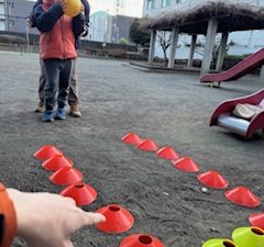ボールをキャッチ! りぼんU 2023.11.29 こんにちは。 昨日は公園でボールをキャッチする遊びをしました。 ボールを投げる人と、バケツでキャッチする人に分かれました。 投げる前に「行くよ~」と声をかけてボールをポーン! 1年生は少し近い距離からポーン! キャッチする人もタイミング合わせるとても良い練習になりました(^^)/ りぼんU