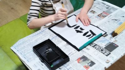 午後は絵馬作りとスタンプ遊びをしました。手型スタンプをしてから目、鼻を貼り髭を描いて辰を仕上げました。スタンプ遊びは手型スタンプをしたり、色々な形のスタンプを押して遊びました。