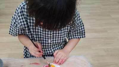 今日の午前中はボール渡しとボール遊び午後からはおひな様製作とちぎり絵をしました☆
