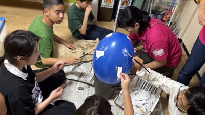 洋服に絵の具が着かないようにエプロンを付けるのも
