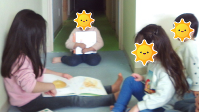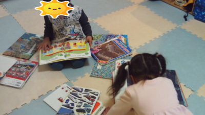 砂場では、型に砂を入れてケーキを作ってくれたり、湿った砂を入れて