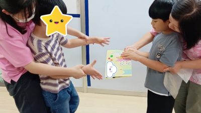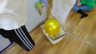 机上遊びでは数字とカエルの人形の数合わせをしました。