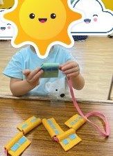 個別をしていない時間に段ボールタクシーで遊びました。タクシーに乗ったり、引っ張ったり、お友だちと交換しながら乗ることが出来ました。