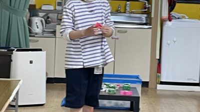 おにごっこ! りぼんU 2024.05.23 5月22日(水)のりぼんUは室内では6月の壁面製作のアジサイ作りに使う折り紙集めをしました🌼なんでも時間ではお友達に紙芝居を読んであげる微笑ましい光景がみられました😊室外では散歩からの公園遊びでおにごっこや遊具で楽しく遊びました🎵 りぼんU
