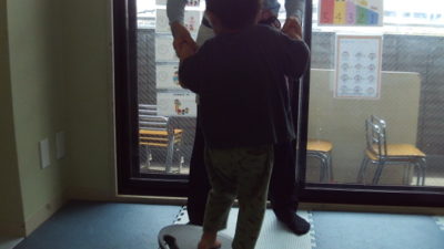 職員の動きをよく見て真似っこしているところです。