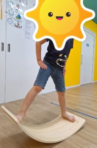 個別をしていない時間にバランスボードをしました。乗って左右に揺らす、裏返して山にして乗り降り、くぐるの動きをしましたよ。