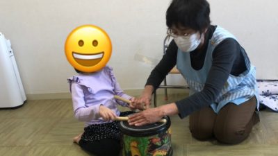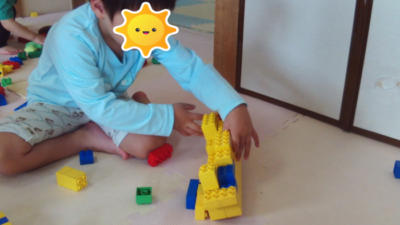 今日の室内遊びは、“果物の木ゲーム”と“真似っこ遊び”を