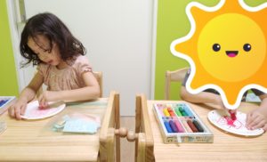 クレヨンで模様を描いてから紐通しをして仕上げました♪