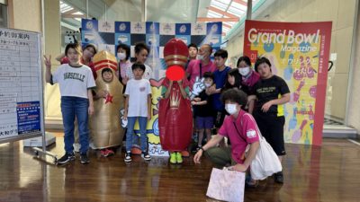 むっくりくまさんは、くまが怖い子はスタッフと一緒に逃げたり、クマ役をやりたい子がやりみんなを追いかけたりして楽しみました。