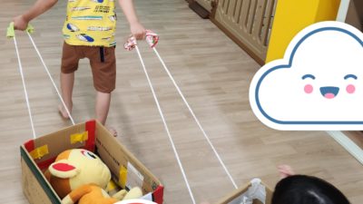 今日はサーキット遊び(バランスストーンとトランポリン)をしました!トランポリンでは、少しずつ両足のバランスが揃ってきているお友だちもいましたよ♪