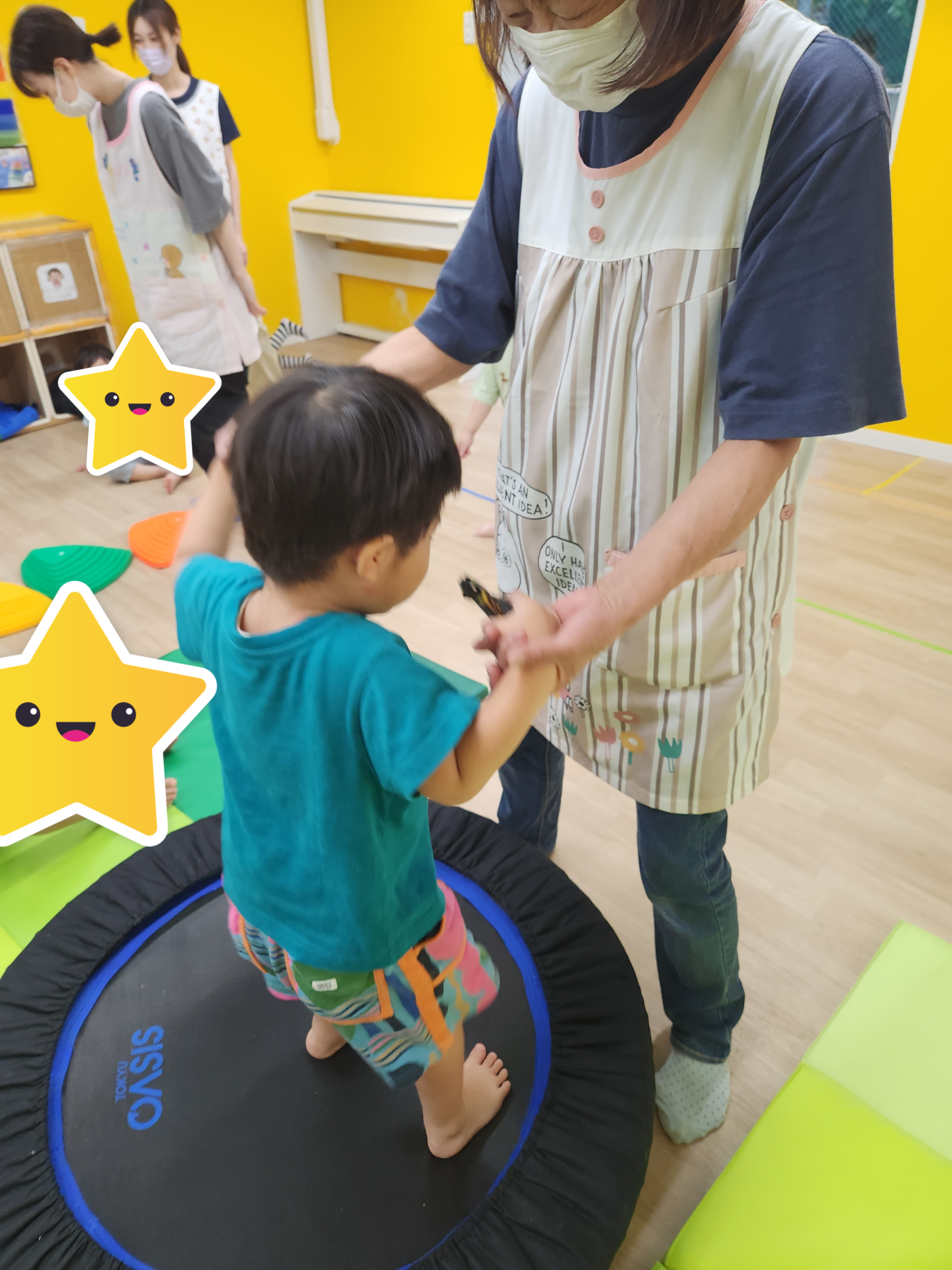 風船遊び🎈 ワクワクどうやってフラフープ風船通しするのかな、と説明を聞いている所です。 2024.09.03 こんにちは。 フラフープの内側を狙って風船を投げる遊びをしました。 4月の年度初めの頃よりお話を聞くことが上手になっているワクワクのお友達です。 これからも沢山遊びましょう(*^-^*) どうやってフラフープ風船通しするのかな、と説明を聞いている所です。 フラフープの内側を狙って上手に風船を投げられたね✨