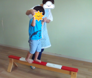 今日のサーキット♪ 未分類バランス上手だね♪ 2024.09.18 こんにちは 今日のサーキットは、平均台をしました 緑の踏み台の足形の上に立ち、ジャンプをして平均台の上を 歩きます 最後まで渡ると窓に貼った手形にタッチをします✋ 両手を広げバランスをとりながら歩いたり 職員と一緒に最後まで渡り切ったりそれぞれしっかり 歩くことが出来ました(^^♪ バランス上手だね♪ 何度も頑張ったねカッコいいね♪