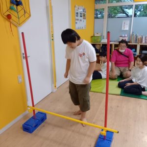 後半は室内でジャンプサーキットをしました。準備から後片付けまで子ども達がお手伝いをしてくれてあっという間にできあがりました(⌒∇⌒)
