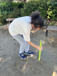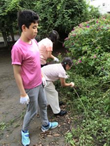 前半組は、学校から帰って来て公園へ行き、トングを持ってごみや落ち葉を拾いました。