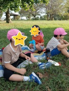 木曜日のりぼん りぼん 2024.09.27 こんにちは 木曜日のりぼんでは、東伏見公園に行ってきました。 暖かく、程よい風が吹いていてとても気持ちがいいお天気のなか お散歩することができました。 普段のお散歩より、たくさん歩きました! たくさん歩いた後はしっかり水分補給して 風を感じながら、砂の感触を味わいながら遊びました。 りぼん