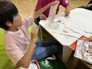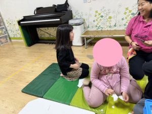 紙ちぎりでは、もうすぐハロウィンなのでピニャータで使用する紙をちぎって作りました!紙の大きさを伝え、その大きさになるように頑張っていました!(^-^)