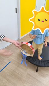 トランポリンでは、おりる際にタンバリンにタッチしておりていきましたよ!