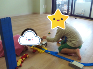 片付けの時間 ワクワク協力して片付けをしよう! 2024.10.03 こんにちは! 片付けをみんなで頑張ってくれている様子です☆彡 「片付けの時間ですよ」と伝えると、空箱を玩具の場所まで持っていって くれ、玩具の種類ごとに片付けをしています♪ また、全部入れ終わるとよいしょよいしょと友達や先生と一緒に棚まで 運んでくれる姿もあります。 みんないつもありがとう🌸 午後の時間では、友達と一緒に「カンカンカン」と言いながら踏み切り付近に トミカの車やレゴブロックのぞうを並べたり、トミカの車を一緒に走らせたり して遊んでいました🚙