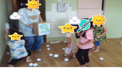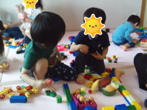 カラーボール的当てをしました ワクワク沢山くっついたね💓 2024.10.04 こんにちは 今日は、室内遊びをしました “カラーボール的当て”では、移動する的を 追いかけながら、当てました そっとつけるように投げる子、力いっぱい投げる子 それぞれ頑張って的を目掛けました❣ 的に当てるよ♪ 沢山くっついたね💓 午後、レゴブロックでアンパンマンのお家を作り 一緒に楽しそうに遊んでいました 美味しそうなお弁当もありましたよ!(^^)! 素敵なお家だね😊