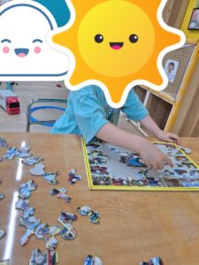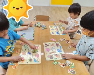 コーナー遊びでは、粘土遊びとパズル遊びをしました。集中して長時間楽しむことができました。
