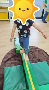 今日の午前中の活動は、サーキットをしました。低い⇒高い⇒ジャンプをする平均台とトンネル、バランスストーンをしました。たくさん体を動かして行うことができましたよ☆
