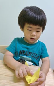個別の様子です。今週は製作の週で個別のお部屋で秋の物を折り紙で折っていっています。出来上がりましたら玄関に飾りますので、是非ご覧ください。