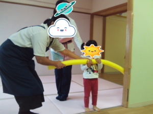 雨降り☂ ワクワク傾斜のある平均台をのぼるよ! 2024.10.08 こんにちは。 今日は雨でしたね。足元悪い中送迎ありがとうございます。 季節の変わり目なので体調に気を付けて行きたいと思います。 電車ごっこでトンネルも潜ったよ。 踏み切りの所で止まれたよ。 傾斜のある平均台をのぼるよ!