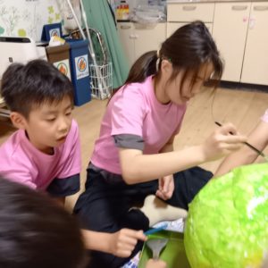 ピニャータ作り(色ぬり) りぼんU 2024.10.17 こんにちは 10月17日(木)のりぼんUは前半組はエアコンのフィルター掃除をお手伝いしてもらいました。掃除機を使って上手に埃を吸ってくれていました。 後半はピニャータ作りの色ぬりをしました。木曜日は黄色と黄緑の二色カラーになりました♪ 木曜日のピニャータもしあがりました(⌒∇⌒) りぼんU