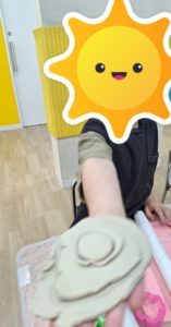 「パンケーキ、はいどうぞ!」粘土で作って食べさせてくれました☆