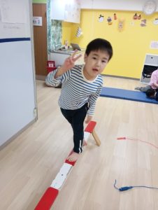 水曜日のりぼん りぼん 2024.10.24 こんにちは 昨日はお天気が悪く、蒸し蒸しとした気温でしたね… 水曜日のりぼんはお部屋でサーキットをしました。 サーキットが楽しくて段々とテンションが上がっていくお友達です☻ 午後もサーキット! 頑張っているなかでもカメラを向けられると ポーズをとってくれるお友達です(*^-^*) ぴょんぴょん♪とジャンプして頑張っています! 写真はありませんが、夕方30分ほどお散歩に行き、電車も見ました。 ひらがなの練習が楽しいお友達! 絵本を上手になぞって楽しそうです。 りぼん