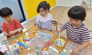 午後は個別とコーナー遊びをしました。コーナー遊びでは、粘土遊びと指先を使う知育玩具を出して、それぞれで好きな遊びを楽しんでいましたよ。