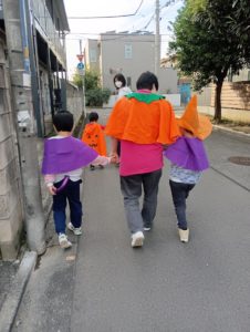 仮装してみんなでりぼんUへお菓子をもらいに。