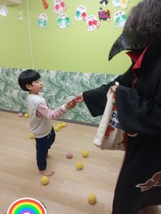 最後は変装したスタッフからお菓子をもらって。