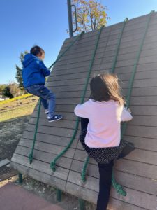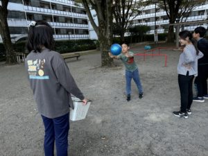 ボールキャッチ りぼんU 2024.11.08 11/7(木)のりぼんUの活動です。 前半組は時間がたっぷりあったので、東伏見公園へ行きました。 ローラーすべり台を滑ったり、ロープを持ってのぼったり・・・ りぼんUに戻る前にスーパーへ行き、おやつのお買い物もしました。 自分たちで食べたいおやつを選び、お手伝いもしてくれました(^▽^) みんながそろったら、久しぶりにしじゅうから第一公園に行き、 ボールをかごに向かって投げました! かごを持ってくれたお兄さんお姉さんも、上手にかごを動かしてキャッチしていました。 りぼんU