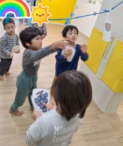 すきな果物を取ったり、指示された果物を取ったり、それぞれの成長に合わせ行っていきました!