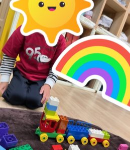 自由遊びではブロックを使って、水族館の駅等作りました♪お友だちの駅と合体させるなど立派な駅を作って楽しんでいましたよ♪
