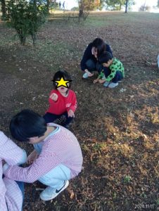 工作のあとはどんぐり探しへ…