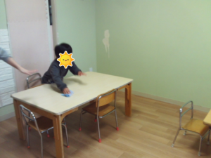 準備が終わったお友達がテーブルを拭いてくれました!(^^)!
